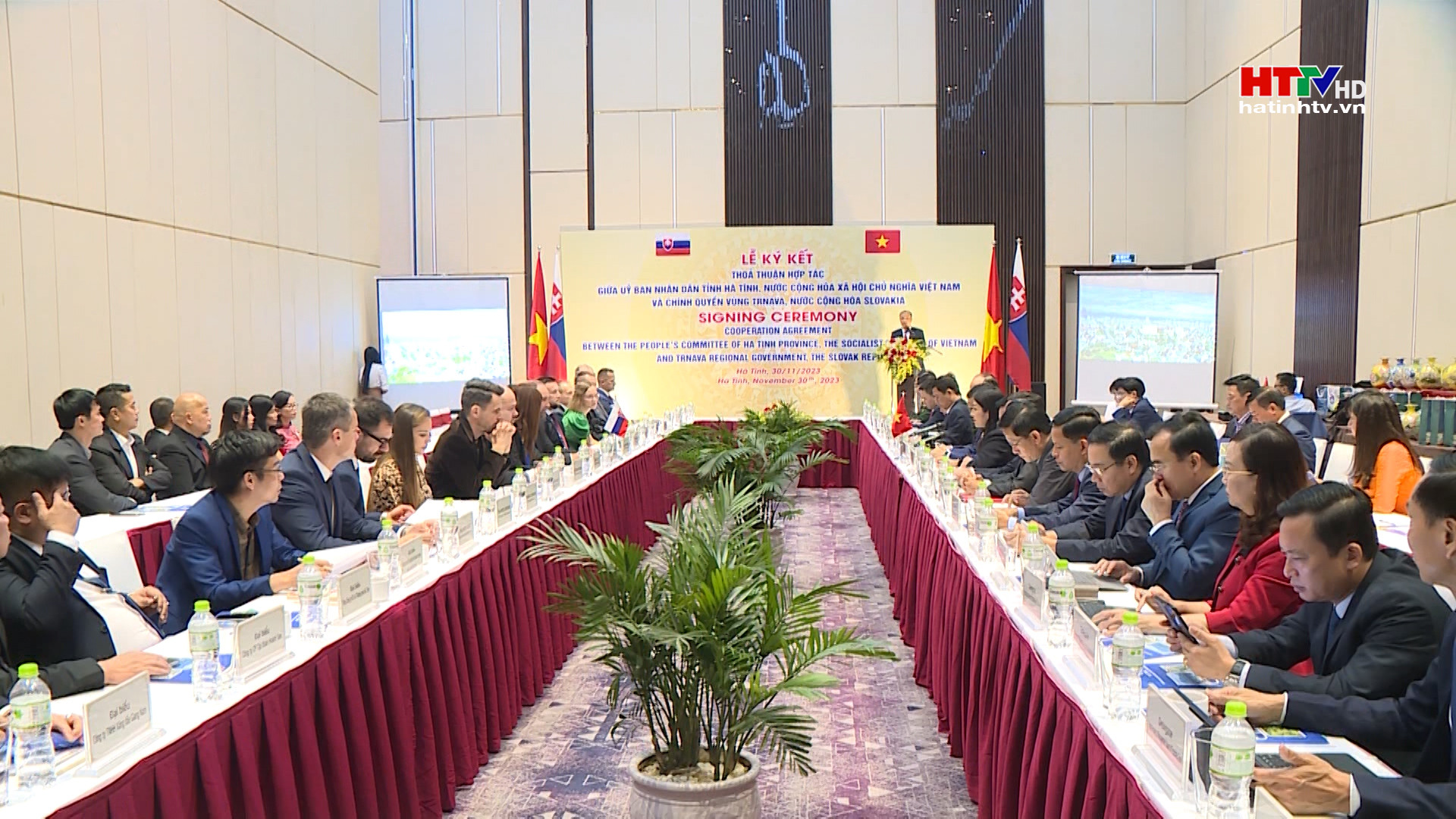 Trong khuôn khổ chuyến thăm và làm việc tại Hà Tĩnh, Chiều 30/11, UBND tỉnh Hà Tĩnh và chính quyền Vùng tự trị Trnava, Cộng hòa Slovakia tổ chức lễ ký kết thoả thuận hợp tác trên các lĩnh vực. Tham dự có ông Jozef Viskupic - Chủ tịch Vùng tự trị Trnava; đồng chí Võ Trọng Hải – Phó Bí thư Tỉnh uỷ, Chủ tịch UBND tỉnh; các đồng Phó Chủ tịch UBND tỉnh; lãnh đạo các sở, ngành, đơn vị, doanh nghiệp.