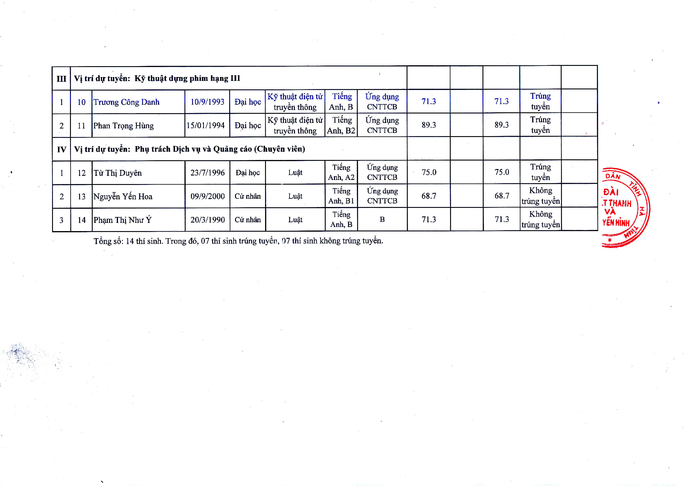 HTTV thông báo kết quả tuyển dụng viên chức năm 2023