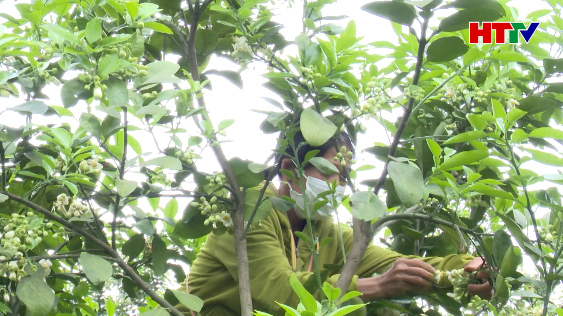 Nhằm tăng tối đa khả năng đậu quả cho cây bưởi Phúc Trạch, thời gian này người dân Hương Khê đang tập trung thụ phấn bổ sung cho cây bưởi.