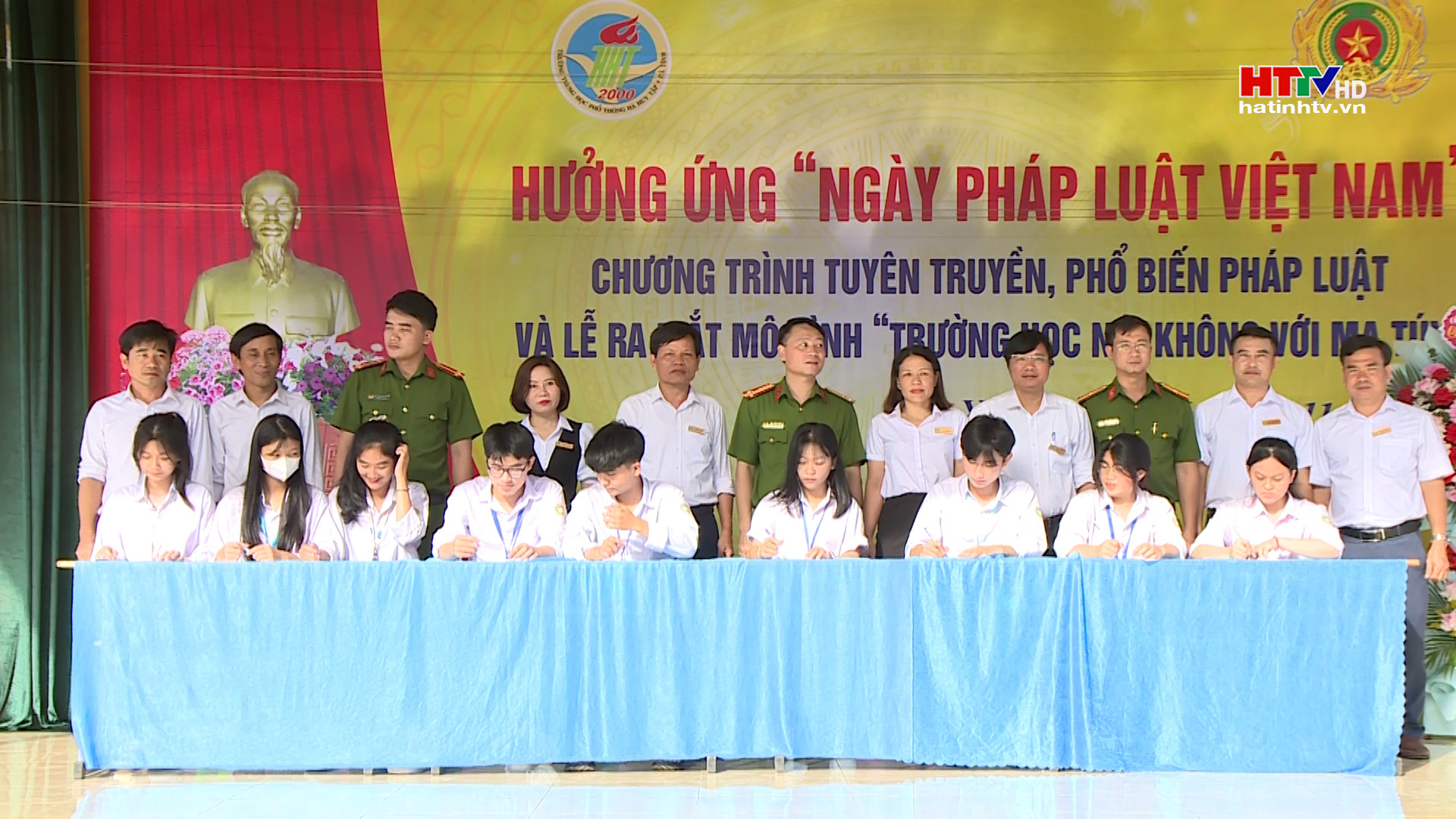 Hưởng ứng ngày Pháp luật Việt Nam 9/11. Công an huyện Cẩm Xuyên phối hợp Trường THPT Hà Huy Tập, vừa tổ chức lễ ra mắt mô hình “Trường học nói không với ma túy” và tuyên truyền, phổ biến giáo dục pháp luật cho các em học sinh.