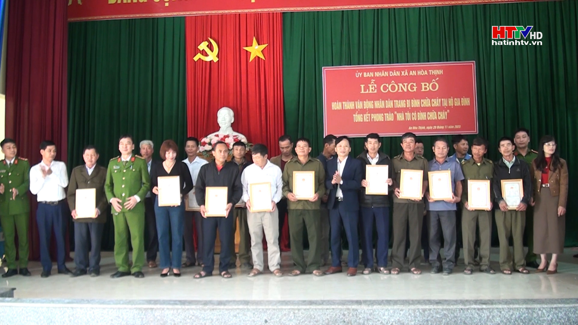 Xã An Hòa Thịnh, huyện Hương Sơn vừa tổ chức lễ công bố hoàn thành 100% hộ dân trang bị bình chữa cháy.
