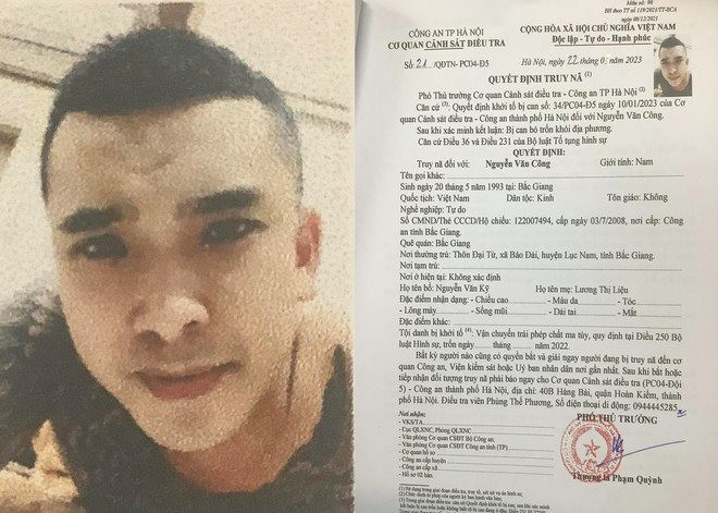 Ngày 22/3/2023, Cơ quan CSĐT Công an TP Hà Nội đã ra quyết định truy nã bị can đối với Nguyễn Văn Công.