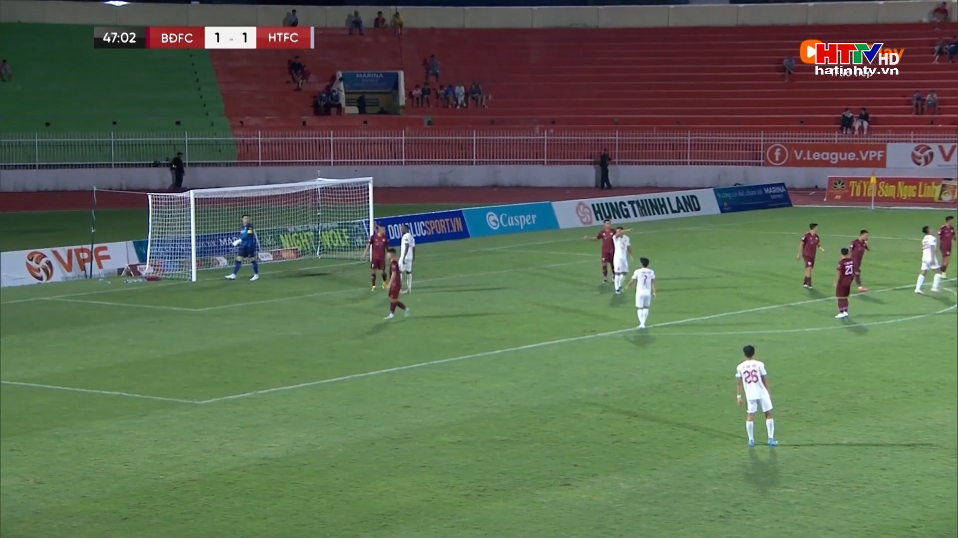 Phút 15, trung vệ Janclesio truy cản trái phép với tiền đạo Hà Đức Chinh trong vòng cấm, đội chủ nhà được hưởng phạt đền. Trên chấm 11m, Hà Đức Chinh sút phạt thành công gỡ hòa cho đội chủ nhà.