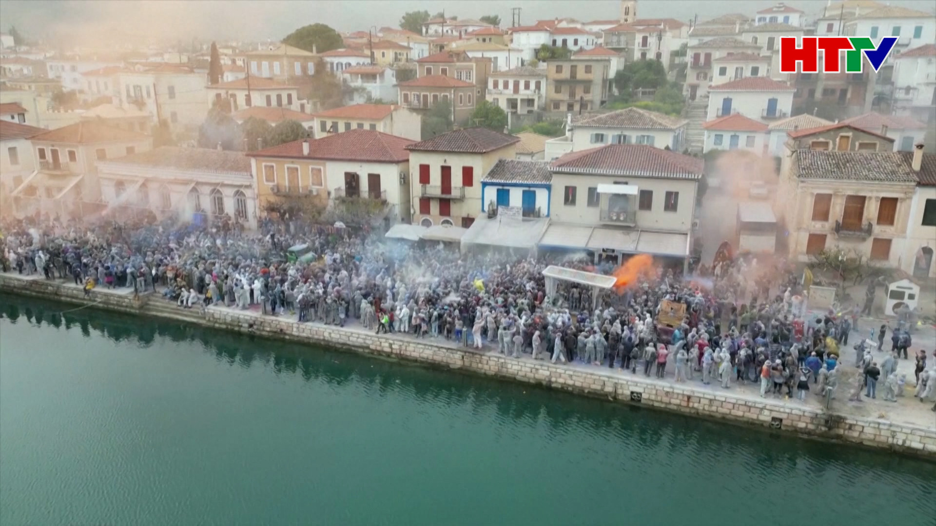 Ở bên kia ngôi làng Galaxidi, hàng trăm khán giả cũng bị cuốn theo không khí của “cuộc chiến” sặc sỡ này.