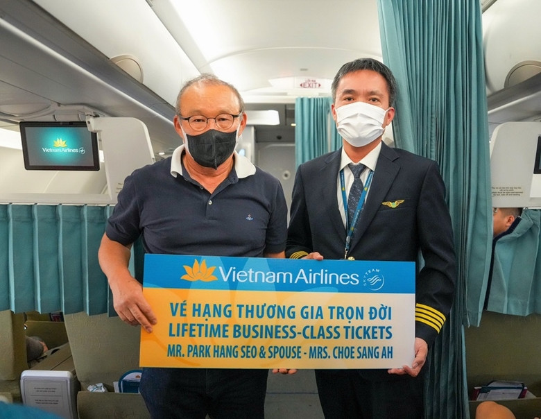 Huấn luyện viên (HLV) Park Hang-seo và phu nhân được Hãng Hàng không Quốc gia Việt Nam (Vietnam Airlines) gửi tặng vé bay Thương gia trọn đời giữa Hàn Quốc và Việt Nam trên các chuyến bay của Vietnam Airlines.