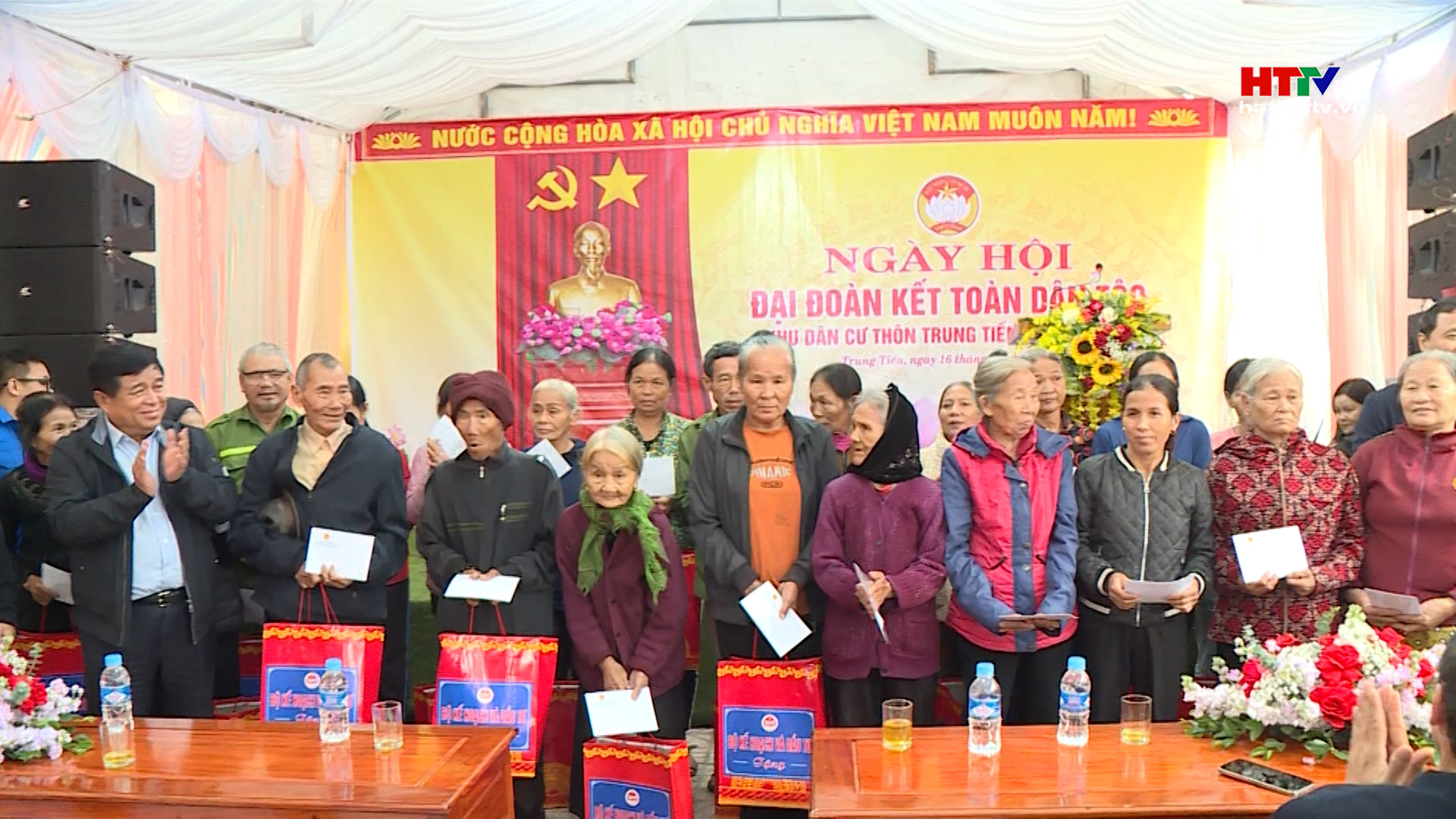 Sáng nay, đồng chí Nguyễn Chí Dũng - Ủy viên Trung ương Đảng, Bộ trưởng Bộ Kế hoạch và Đầu tư đã đến chung vui ngày hội Đại đoàn kết toàn dân tộc với nhân dân thôn Trung Tiến, xã Điền Mỹ và tặng quà cho các hộ dân trên địa bàn huyện Hương Khê. Tham dự có đồng chí Hoàng Trung Dũng – Uỷ viên Trung ương Đảng, Bí thư Tỉnh ủy, Chủ tịch HĐND tỉnh; đồng chí Võ Trọng Hải – Phó Bí thư Tỉnh uỷ, Chủ tịch UBND tỉnh; đồng chí Nguyễn Hồng Lĩnh – Uỷ viên BTV Tỉnh uỷ, Phó Chủ tịch Thường trực UBND tỉnh; đồng chí Trần Nhật Tân – Uỷ viên BTV Tỉnh uỷ, Chủ tịch UBMTTQ tỉnh; lãnh đạo một số sở, ngành cấp tỉnh.