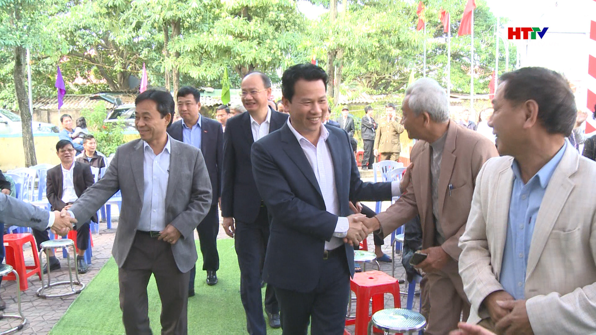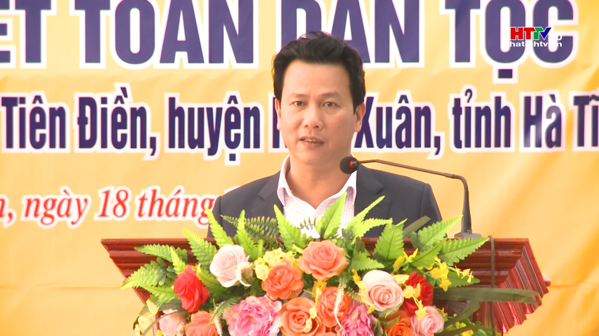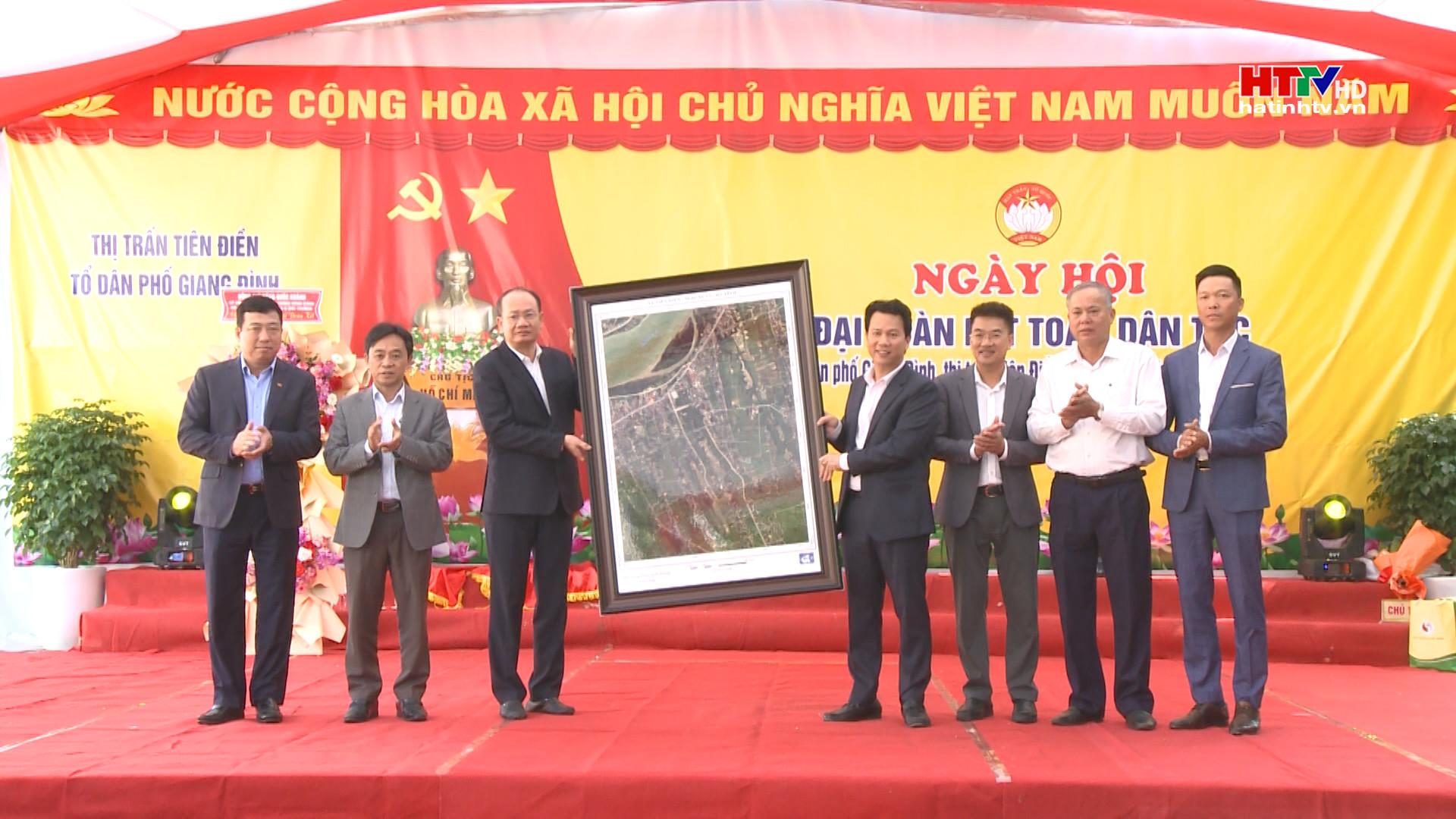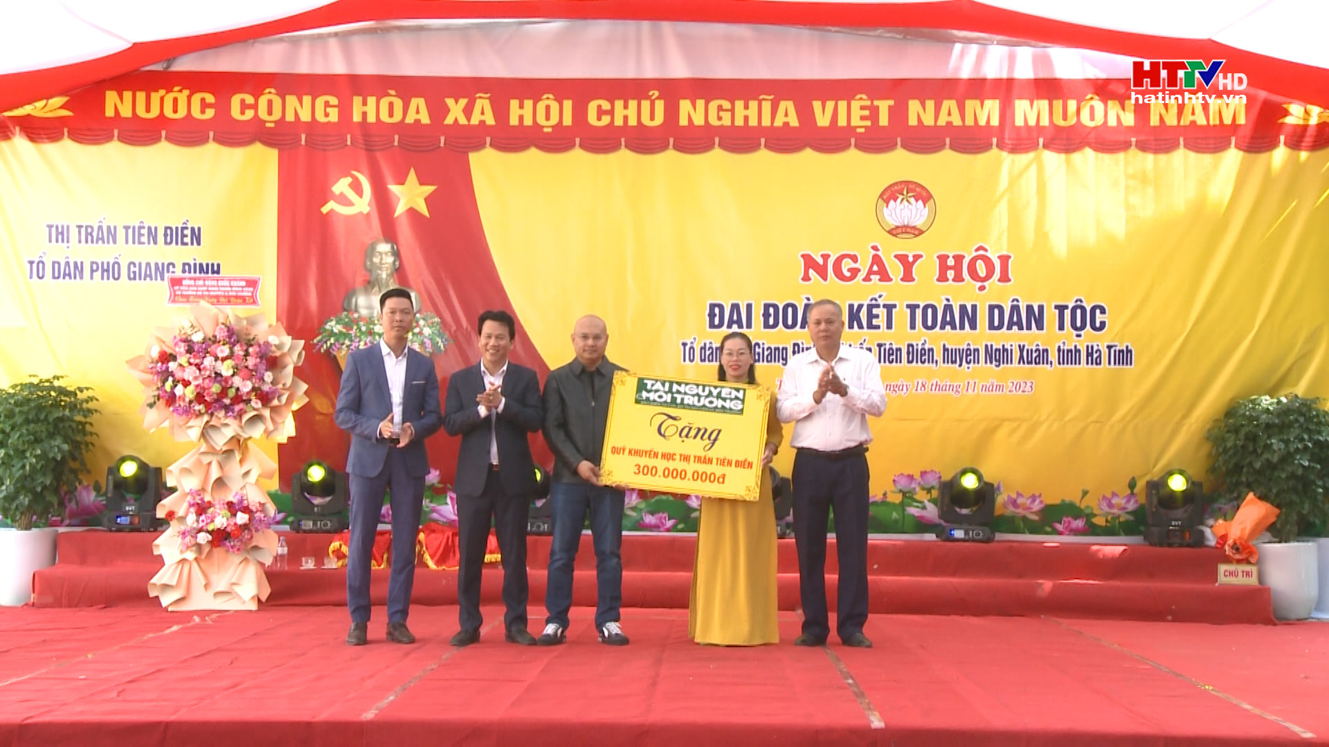 Đến chung vui Ngày hội Đại đoàn kết cùng bà con Tổ dân phố Giang Đình, đồng chí Đặng Quốc Khánh - Ủy viên BCH Trung ương Đảng, Bộ trưởng Bộ Tài nguyên và Môi trường đã trao tặng nhiều phần quà cho hộ nghèo, trao tặng bản đồ số cho huyện Nghi Xuân và trao biểu trưng hỗ trợ 300 triệu đồng cho Quỹ khuyến học thị trấn Tiên Điền, huyện Nghi Xuân