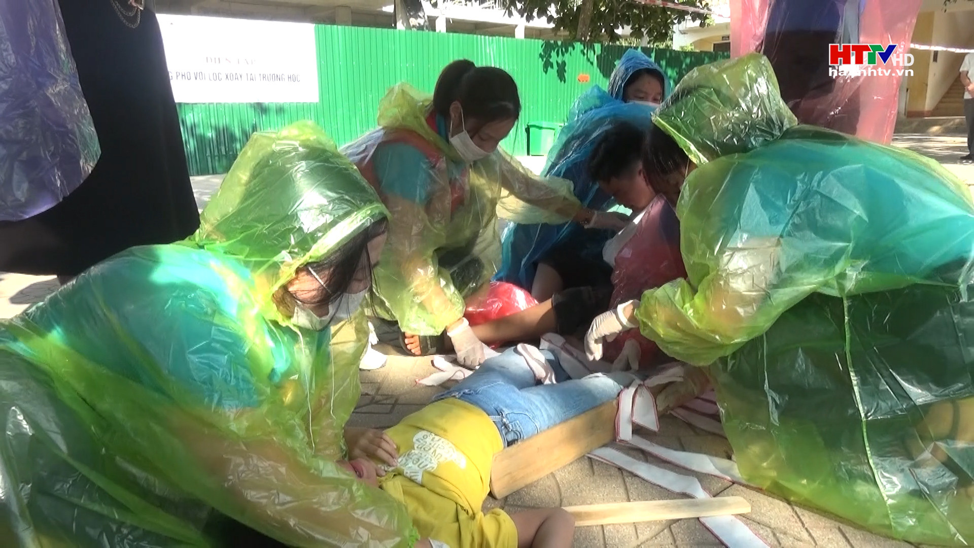 Hương Sơn: Diễn tập ứng phó với lốc xoáy tại trường học