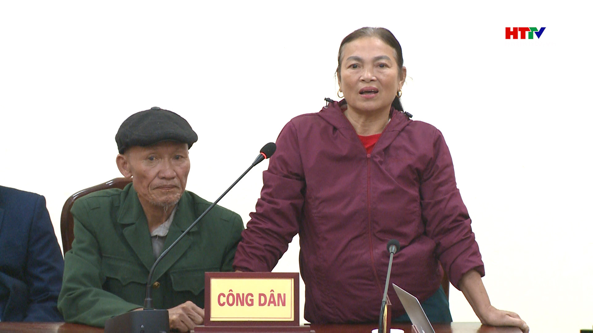 Tiếp đó, các đồng chí lãnh đạo tỉnh đã tiếp các công dân Nguyễn Xuân Vinh, Nguyễn Khắc Phượng, Nguyễn Khắc Thông và Nguyễn Thị Nguyệt ở thôn Mỹ Yên, xã Cẩm Mỹ, huyện Cẩm Xuyên, kiến nghị nội dung liên quan đến việc khai thác cát trên bờ sông Ngàn Mọ. Tiếp công dân Thái Văn Minh và Nguyễn Thị Hương ở tổ dân phố 1, thị trấn Vũ Quang, huyện Vũ Quang về việc cấp giấy chứng nhận quyền sử dụng đất để xây dựng nhà ở.