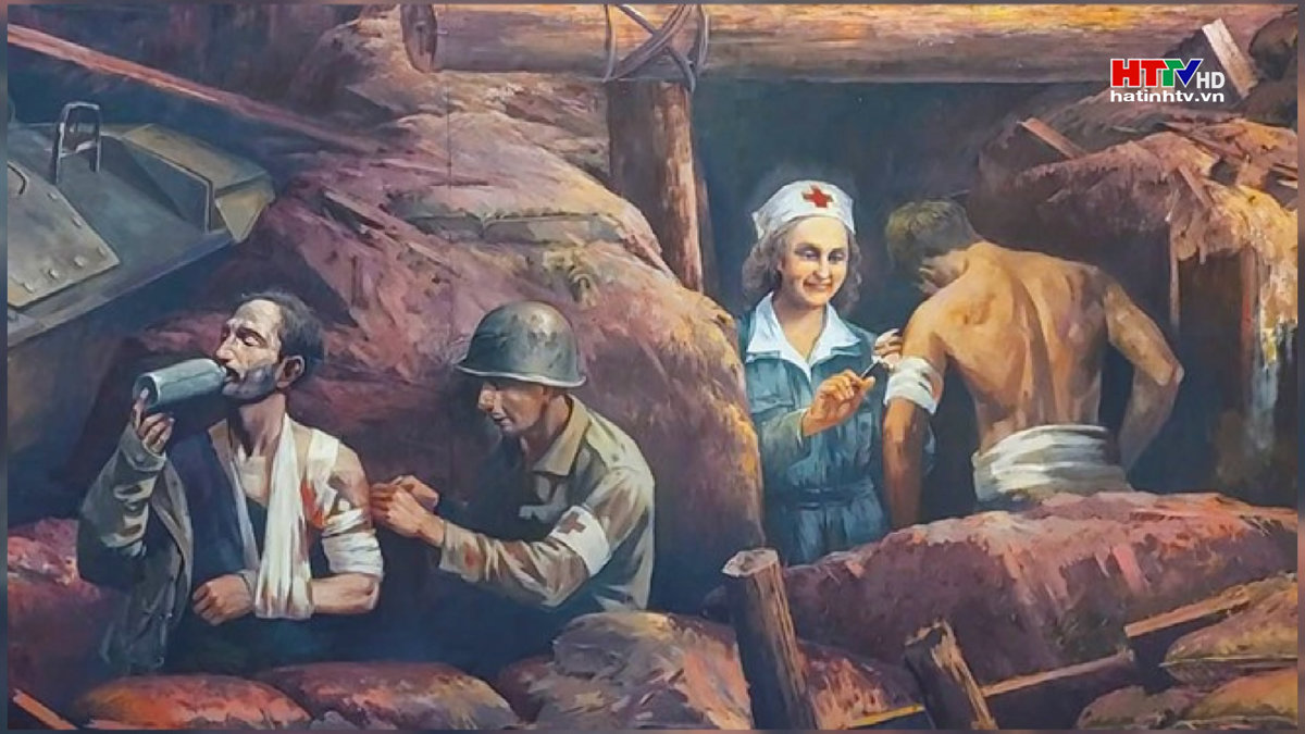 Hình ảnh nữ Y tá Geneviève de Galard được tái hiện trong bức tranh panorama "Chiến dịch Điện Biên Phủ"