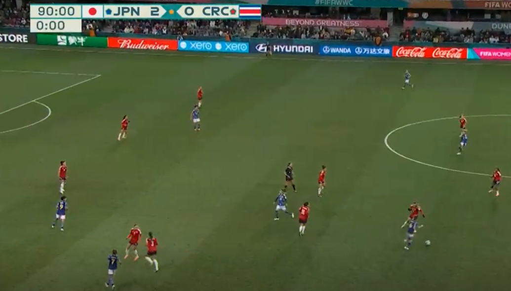 Thắng Costa Rica lượt trận thứ 2 vòng bảng, ĐT nữ Nhật Bản (áo xanh) là đội đầu tiên giành được vé vào vòng 16 đội tại World Cup 2023 - Ảnh cắt từ video