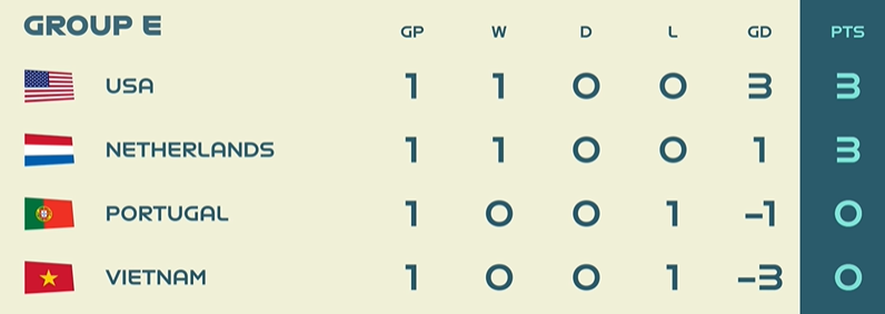 Xếp hạng tạm thời bảng E trước lượt trận thứ 2 - Nguồn: FIFA.com